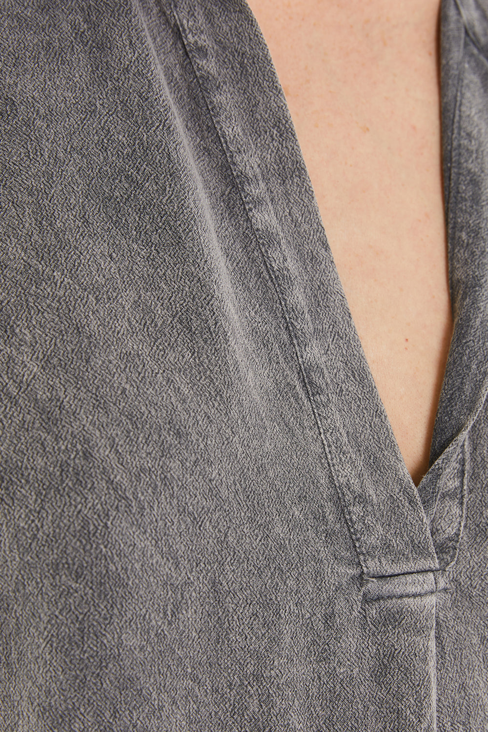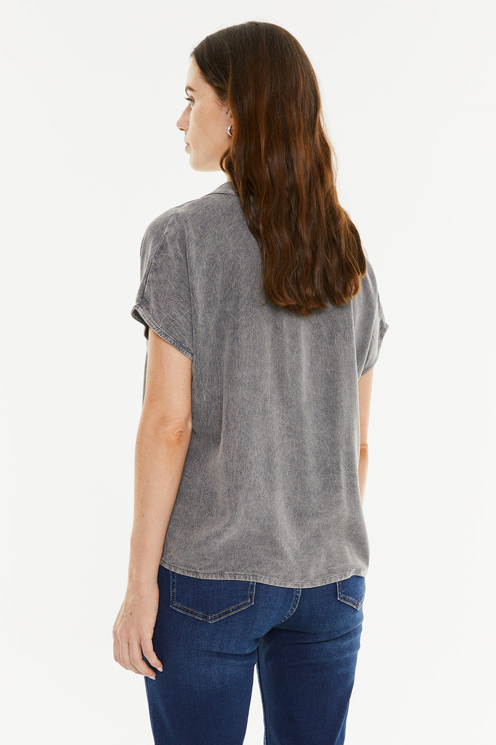 Camisa de mujer con escote polo y manga corta. Prenda sostenible.