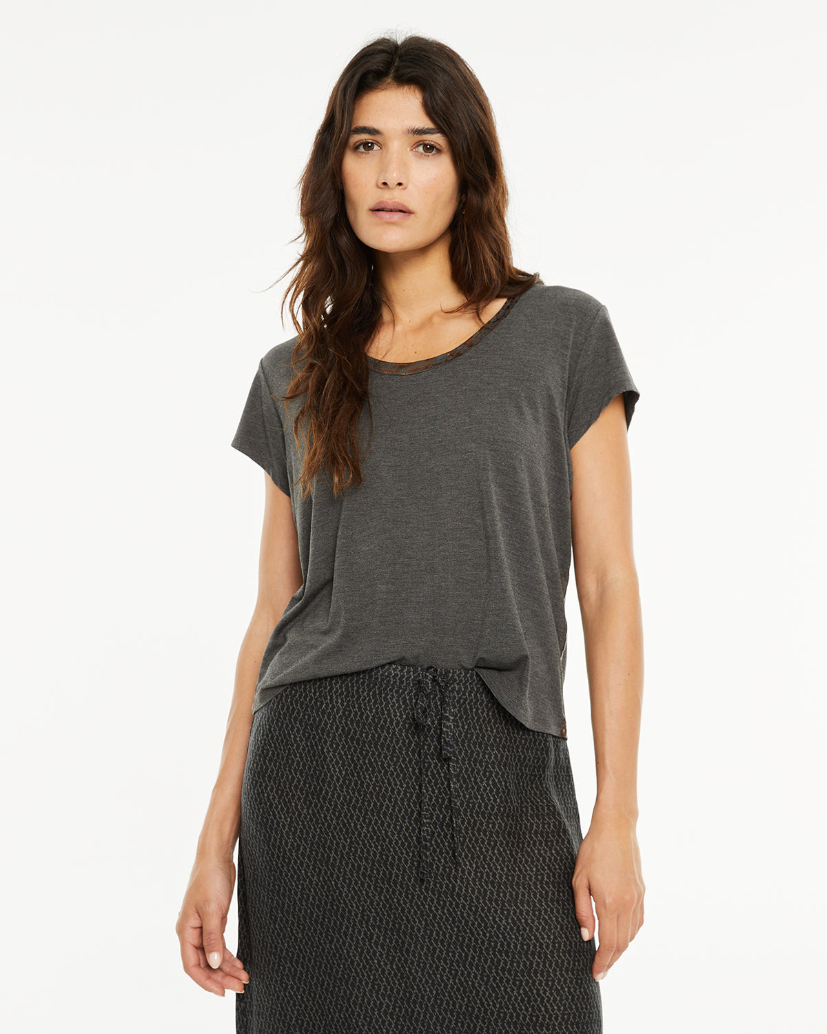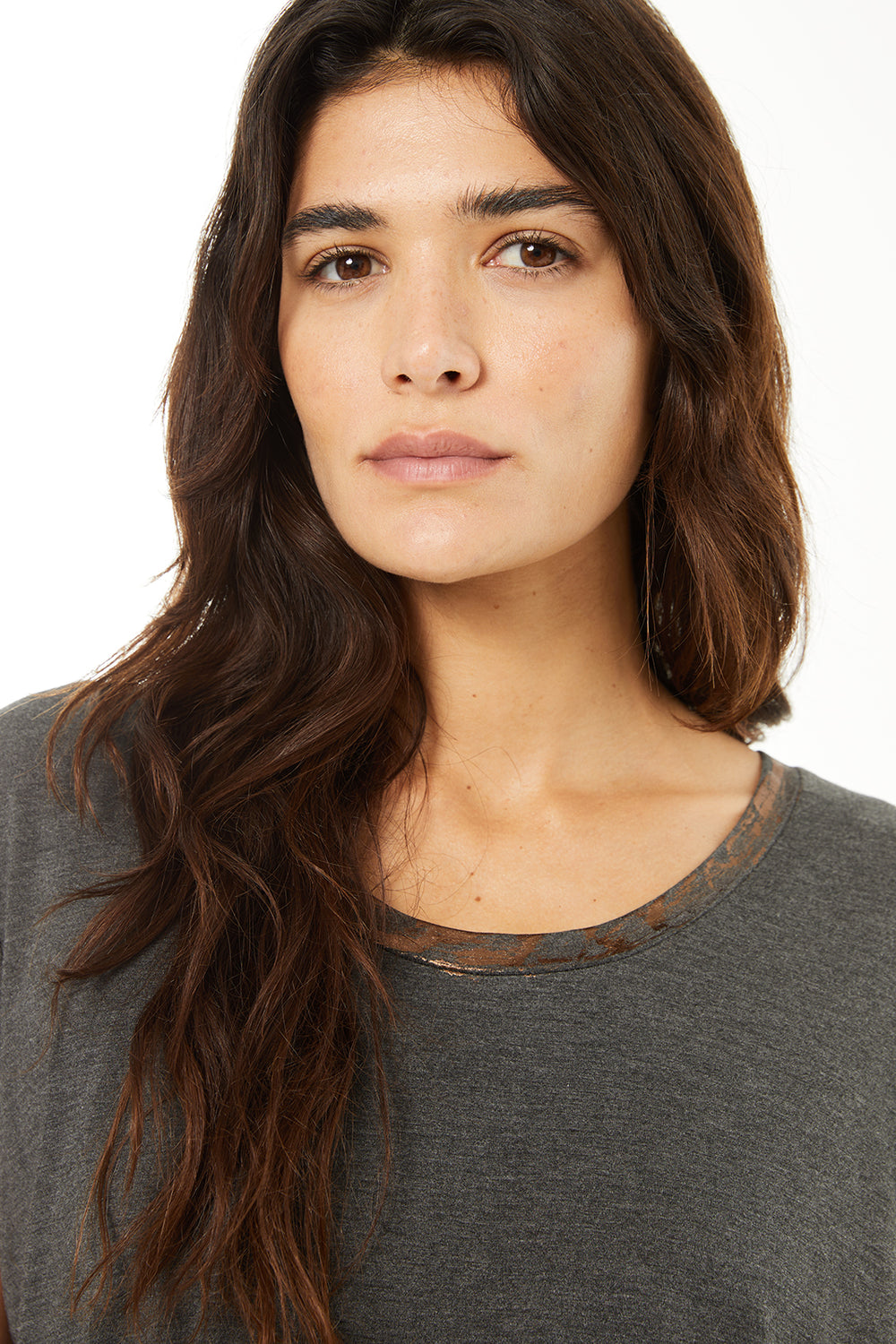 Camiseta de mujer de manga corta, escote redondo y detalle de foil.