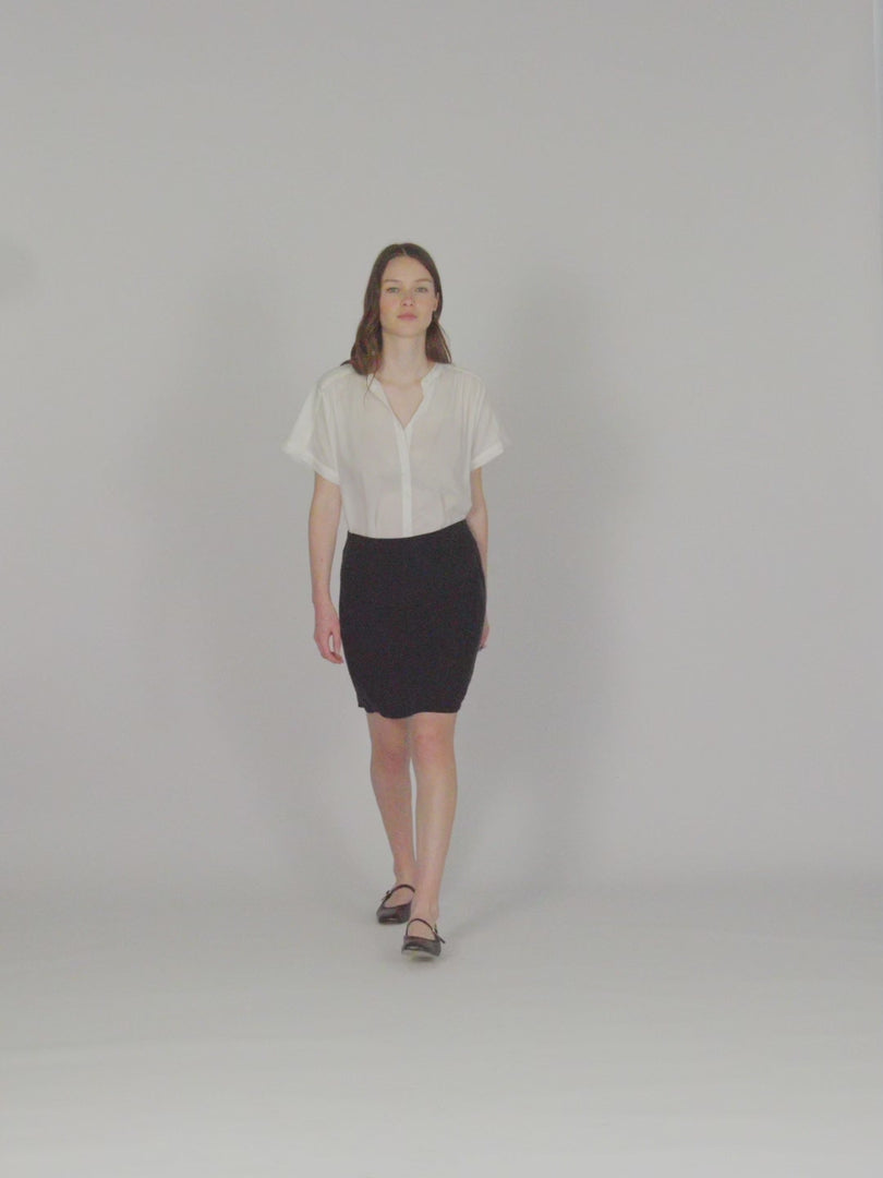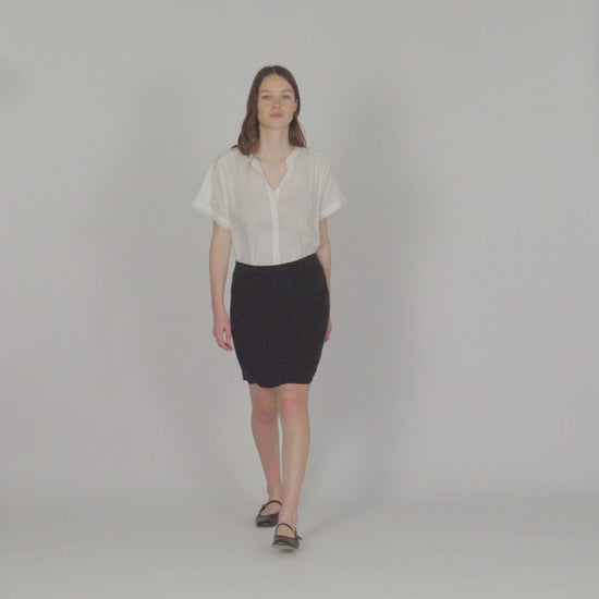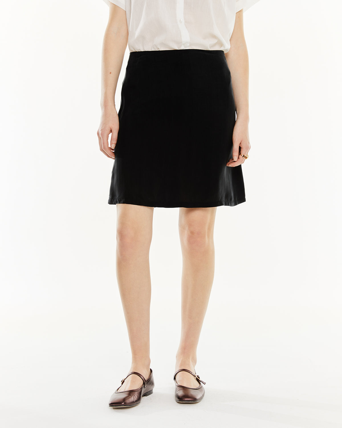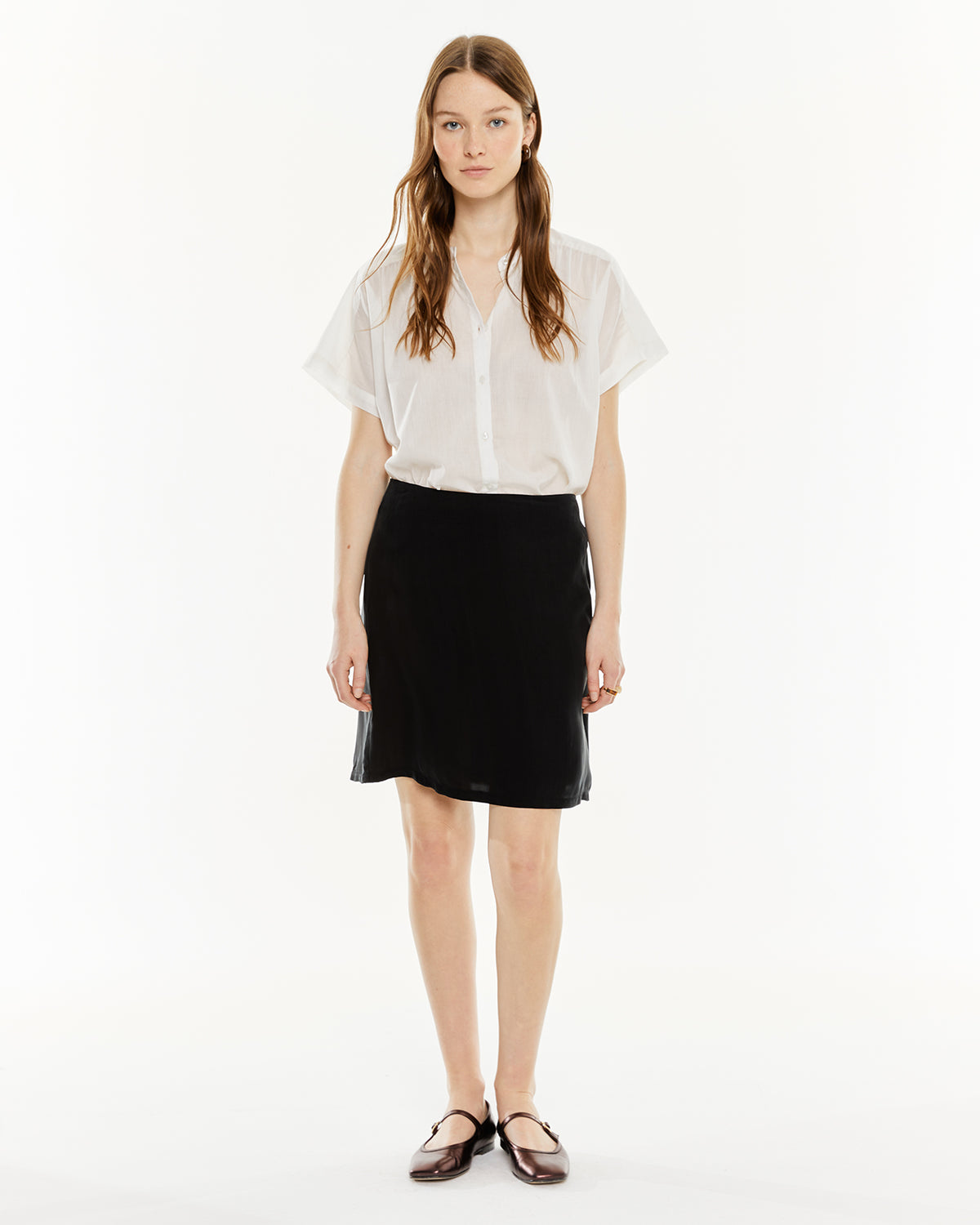 Falda corta de mujer con tejido de cupro. Prenda sostenible.