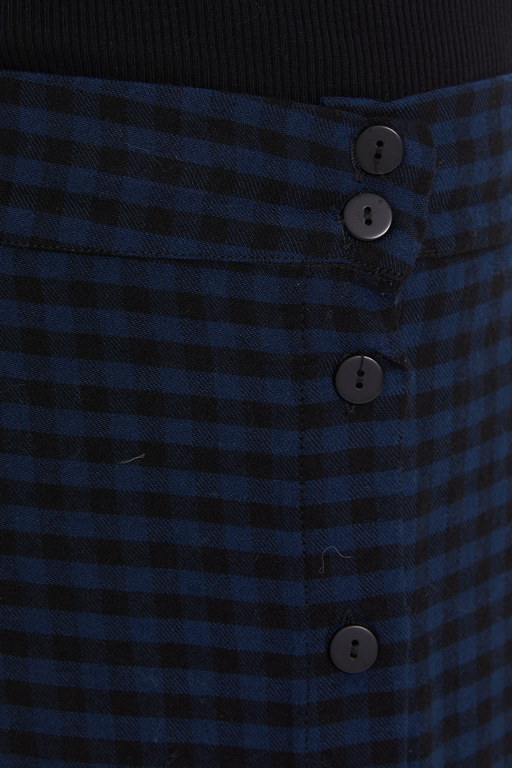 Falda midi de mujer con tejido de cuadros, goma en la espalda y detalle de botones en el delantero. Prenda sostenible.