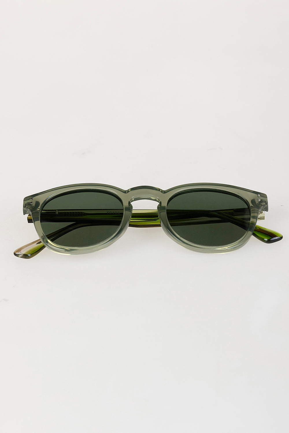 Gafas de sol clásicas montura verde.