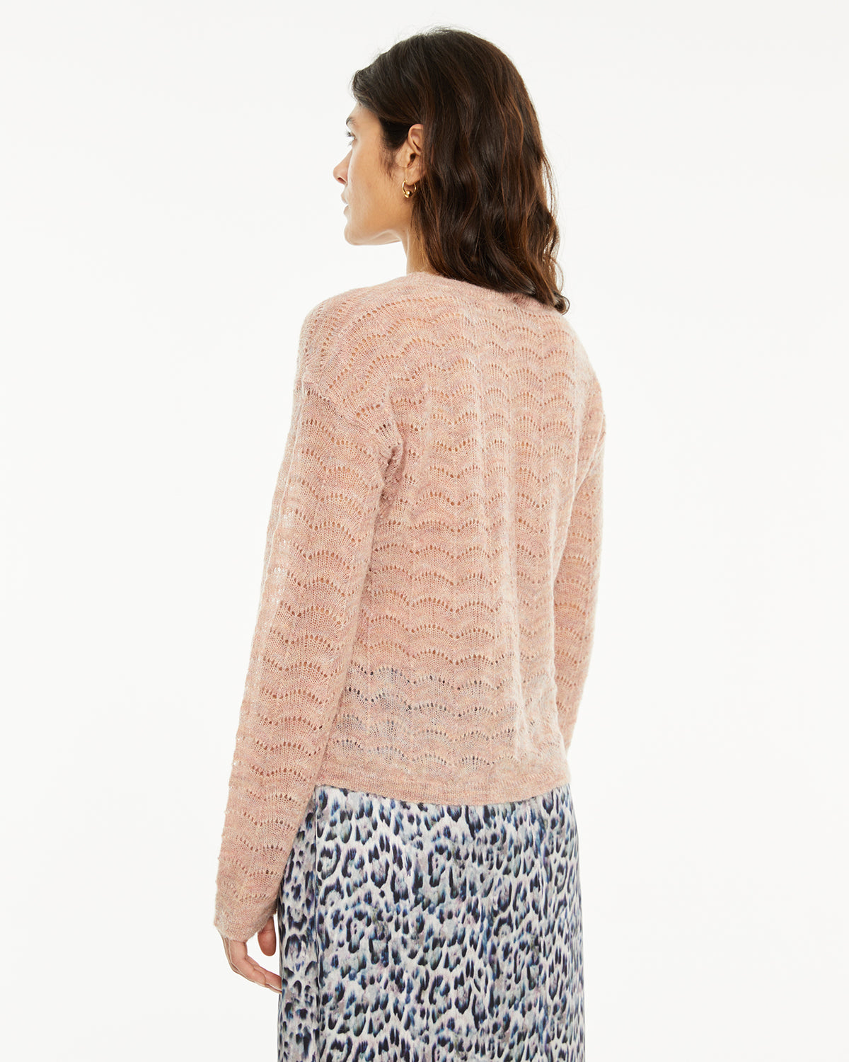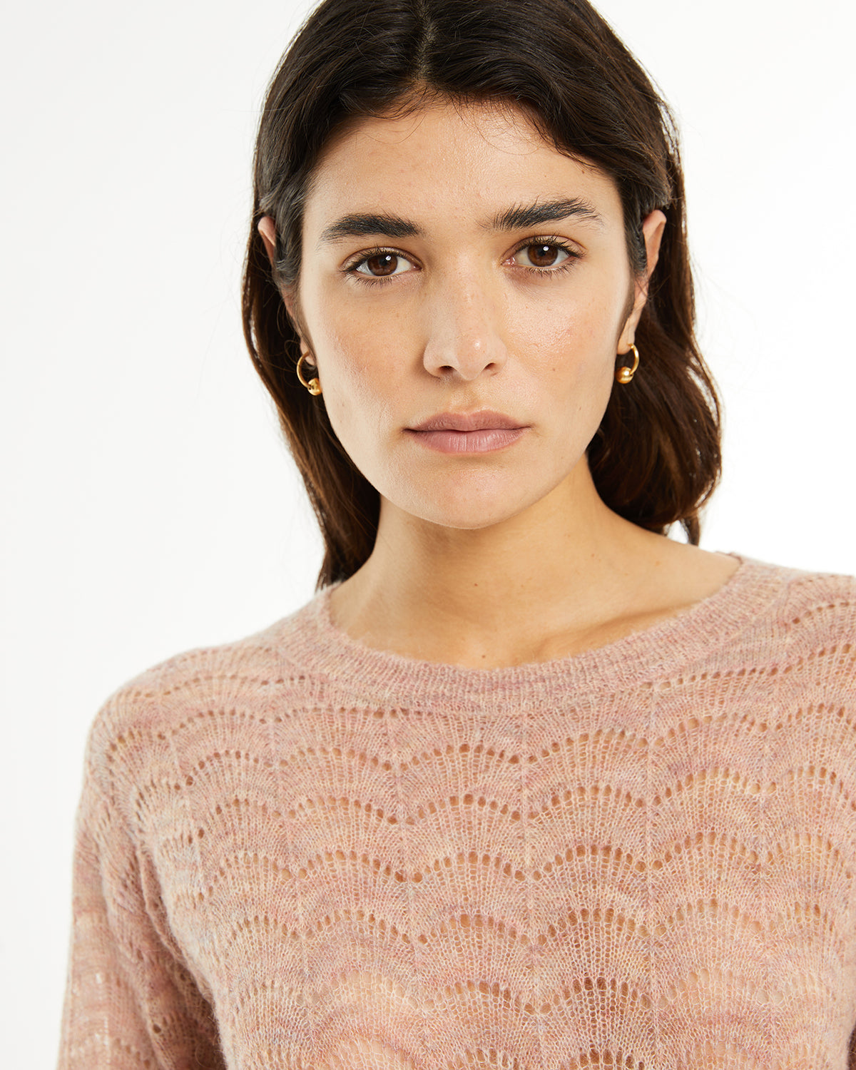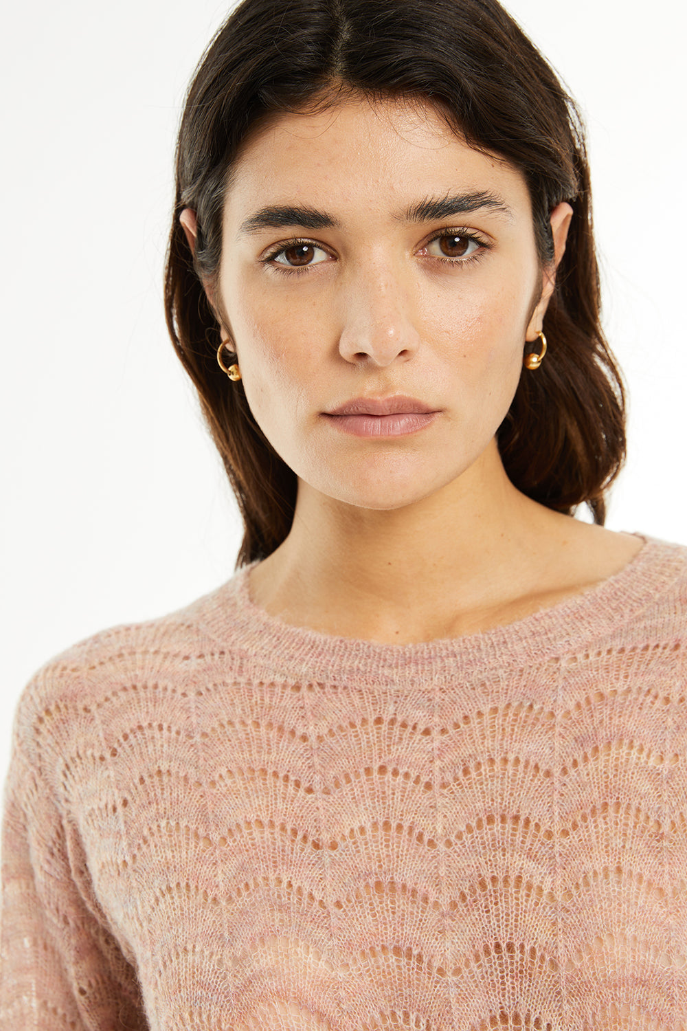 Jersey calado de mujer, con punto de fantasía, escote redondo y manga larga. Prenda sostenible.