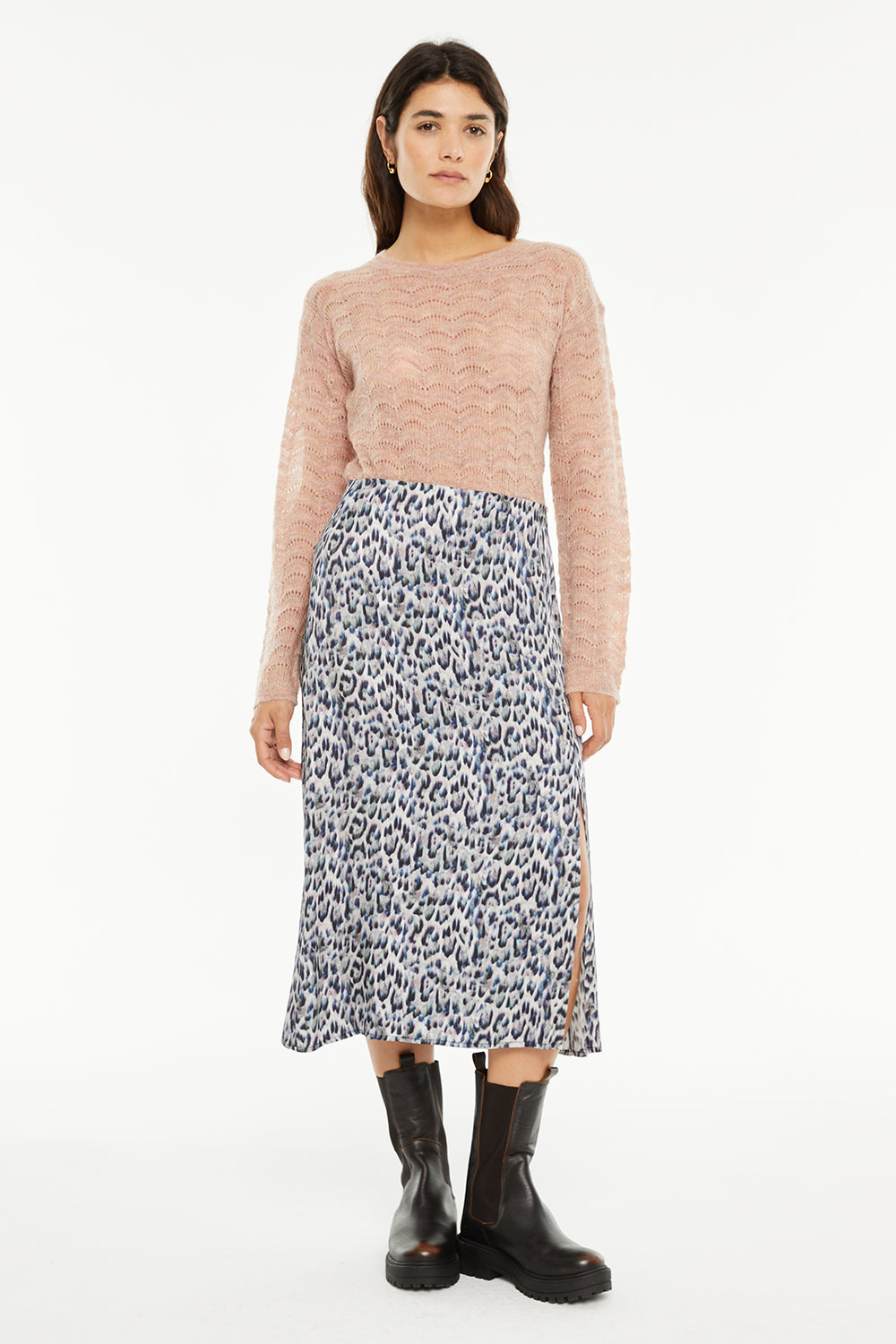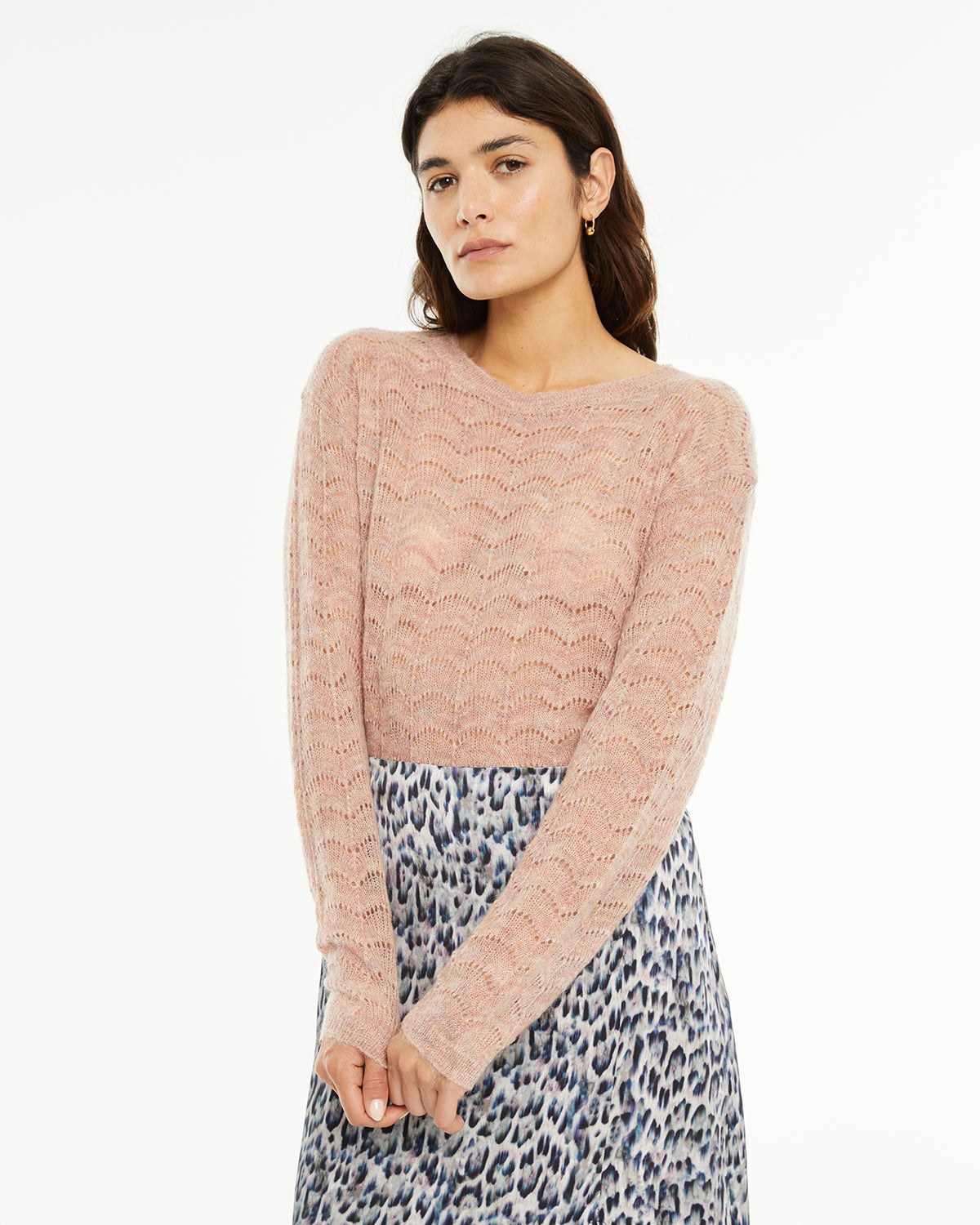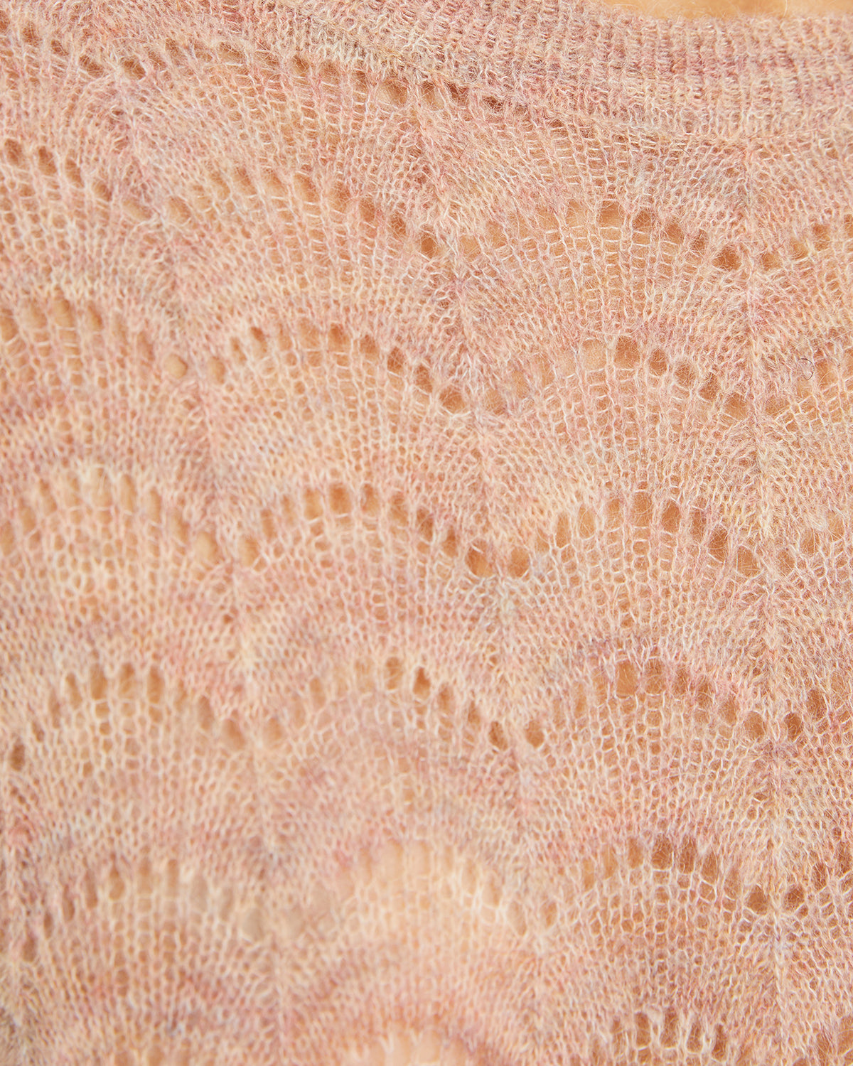 Jersey calado de mujer, con punto de fantasía, escote redondo y manga larga. Prenda sostenible.