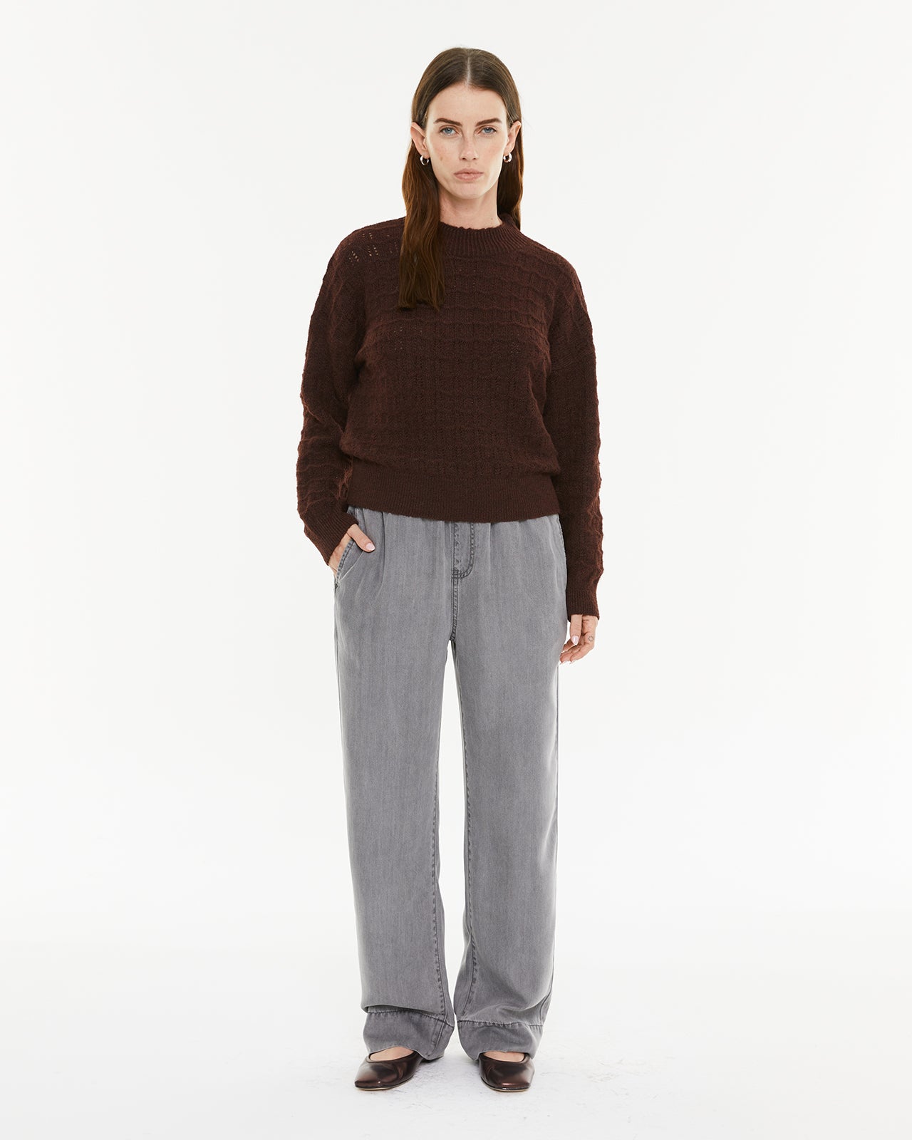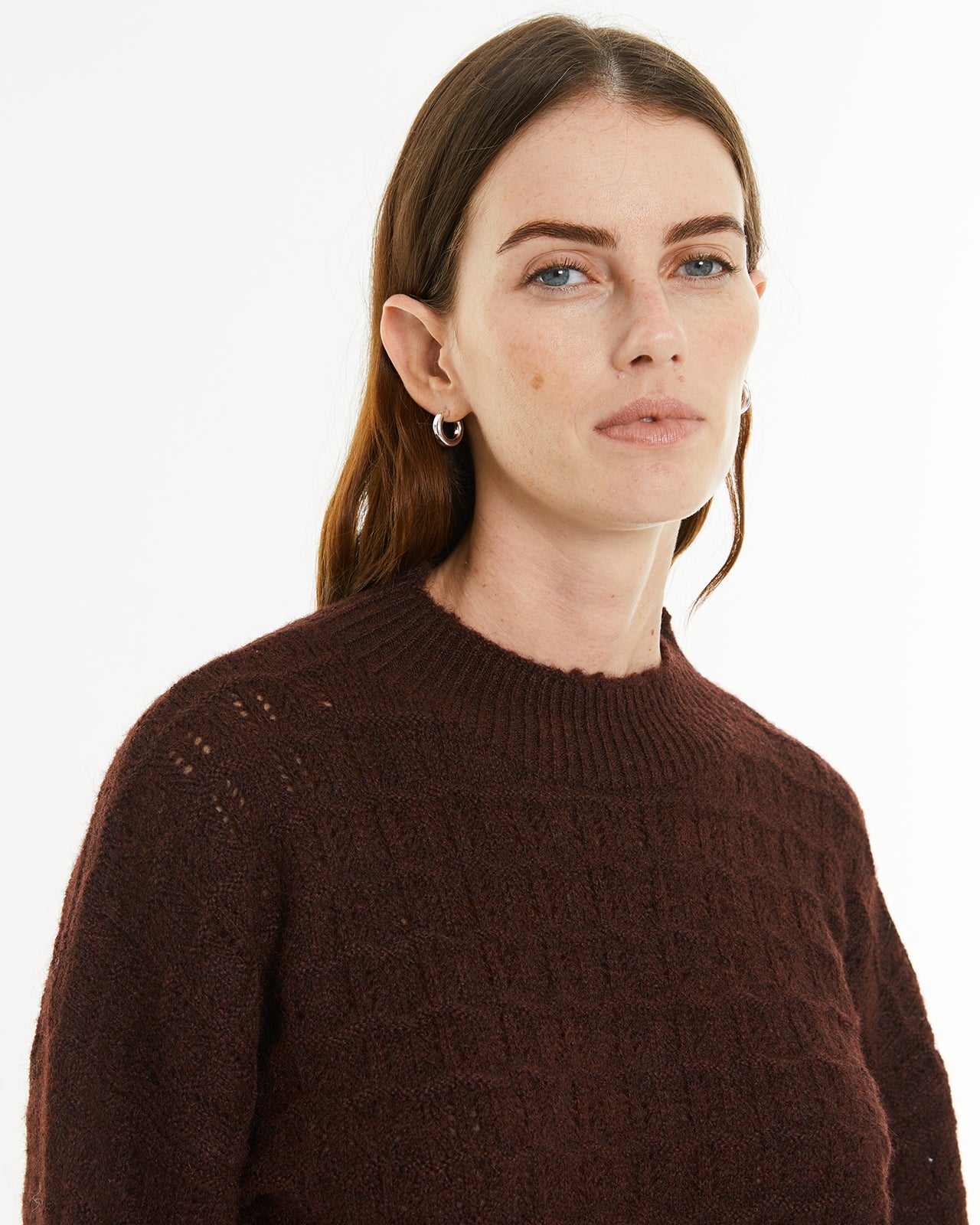Jersey de mujer, escote redondo y punto con estructura. Prenda sostenible.