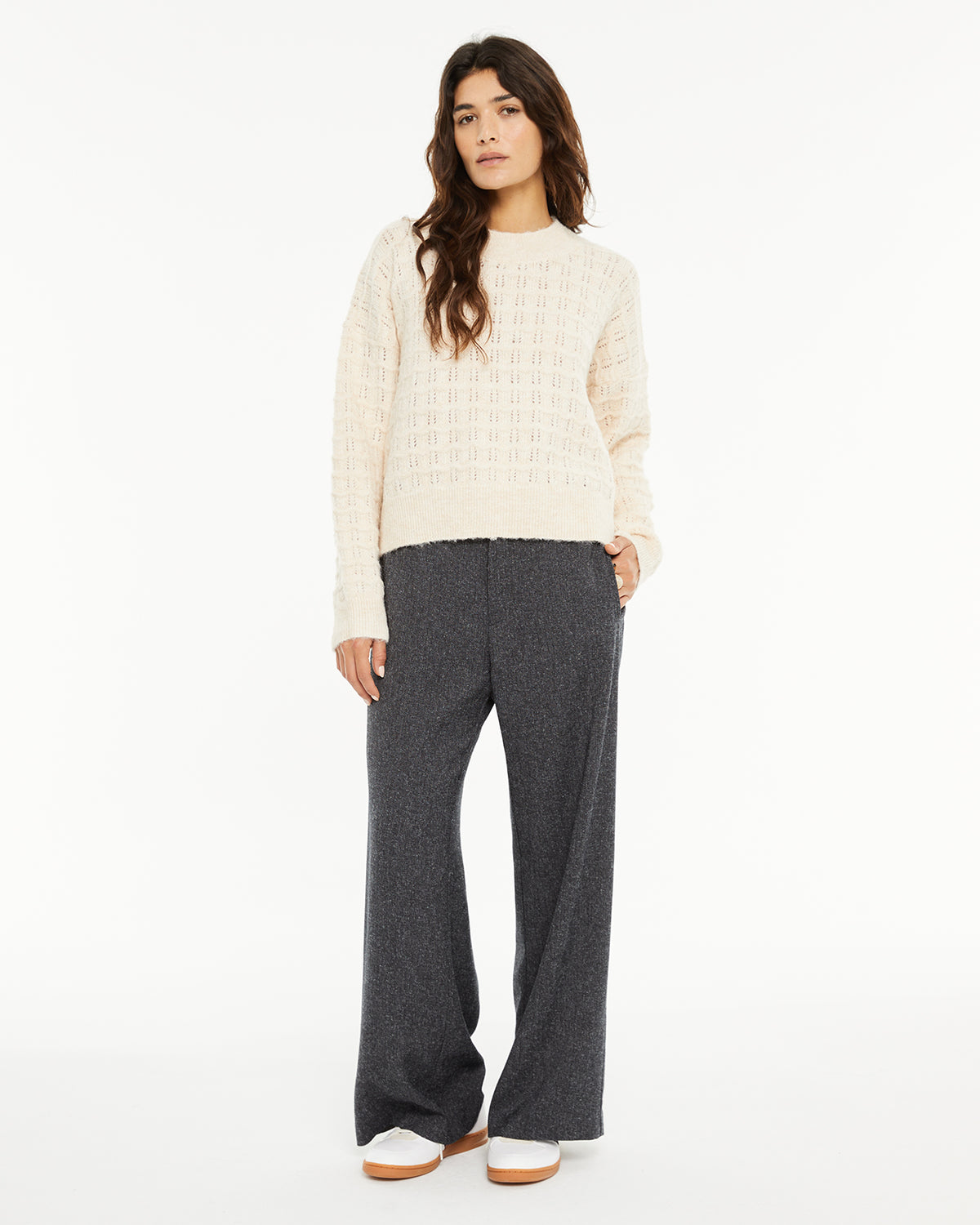 La modelo mide 1,75 cm y utiliza la talla M.