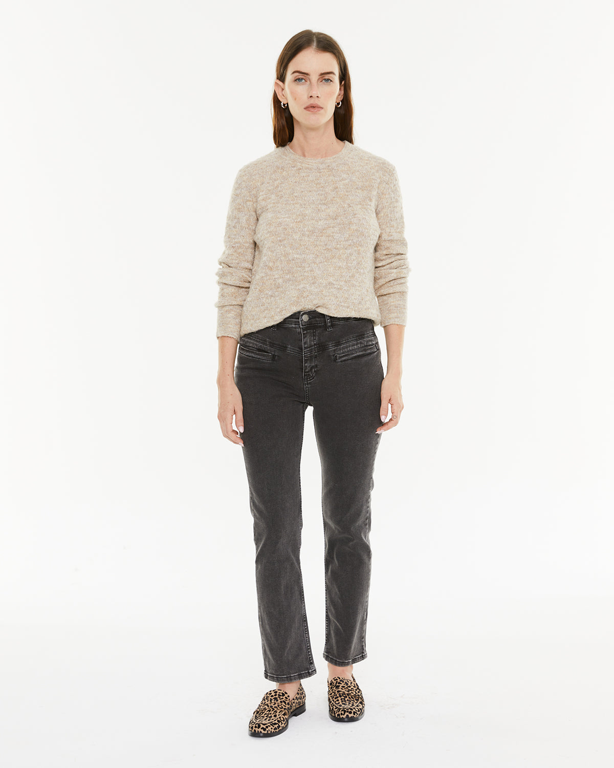 Jersey de mujer con estructura y escote redondo. Prenda sostenible.