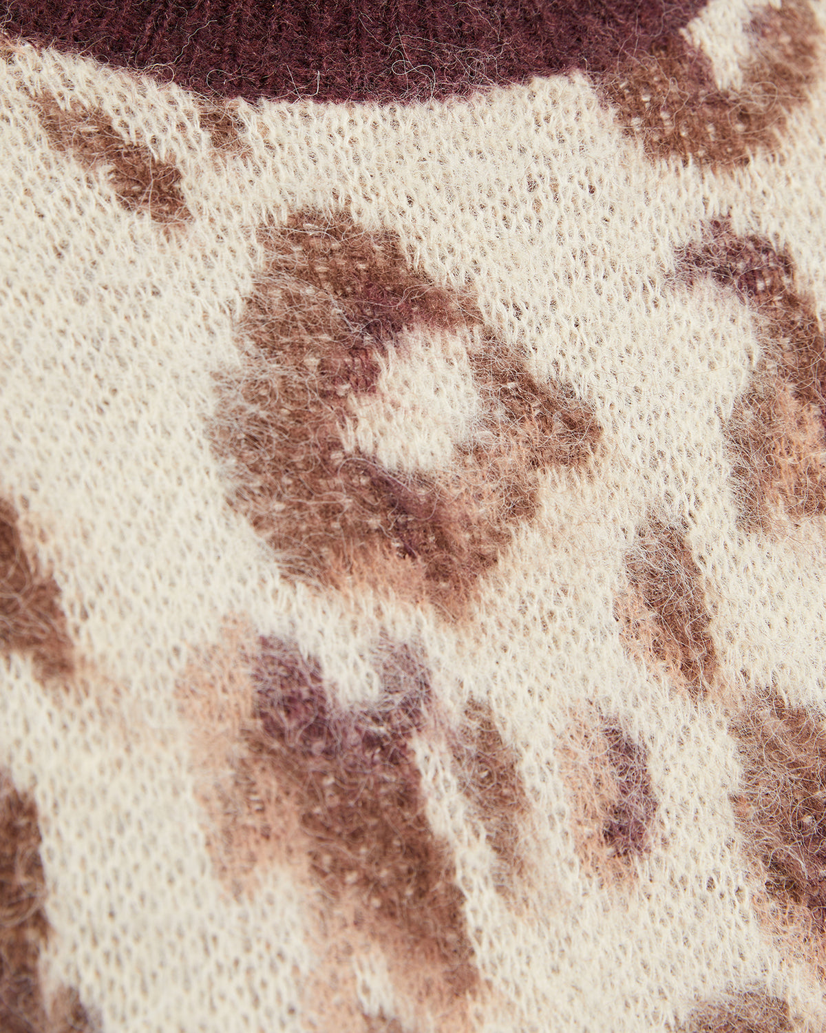 Jersey de mujer con jacquard de animal print, escote redondo y acabados en rib. Prenda sostenible.