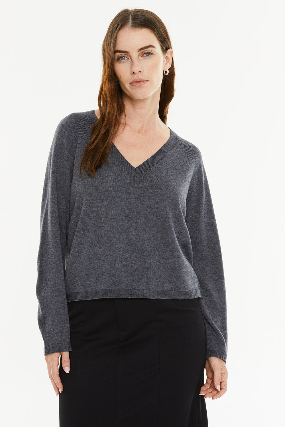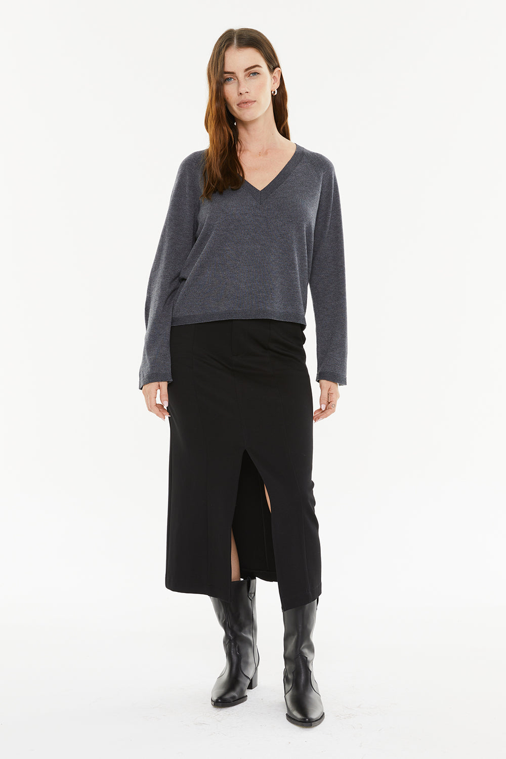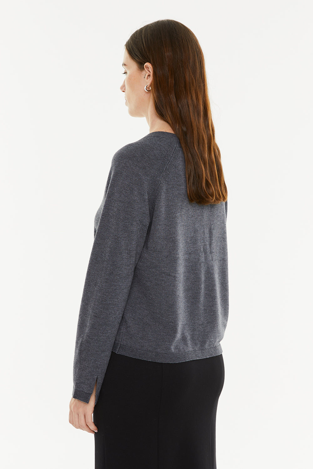 Jersey básico de mujer, con escote pico y aberturas laterales. Prenda sostenible.