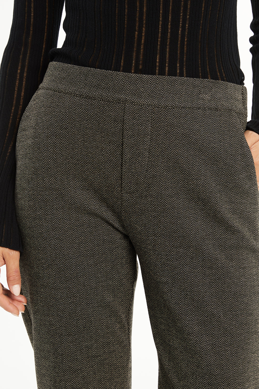 Pantalón de mujer con goma en la cintura, tejido jacquard de espiga y bolsillos laterales.