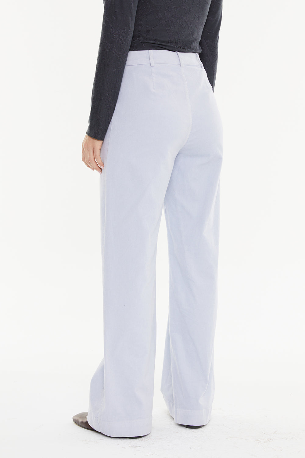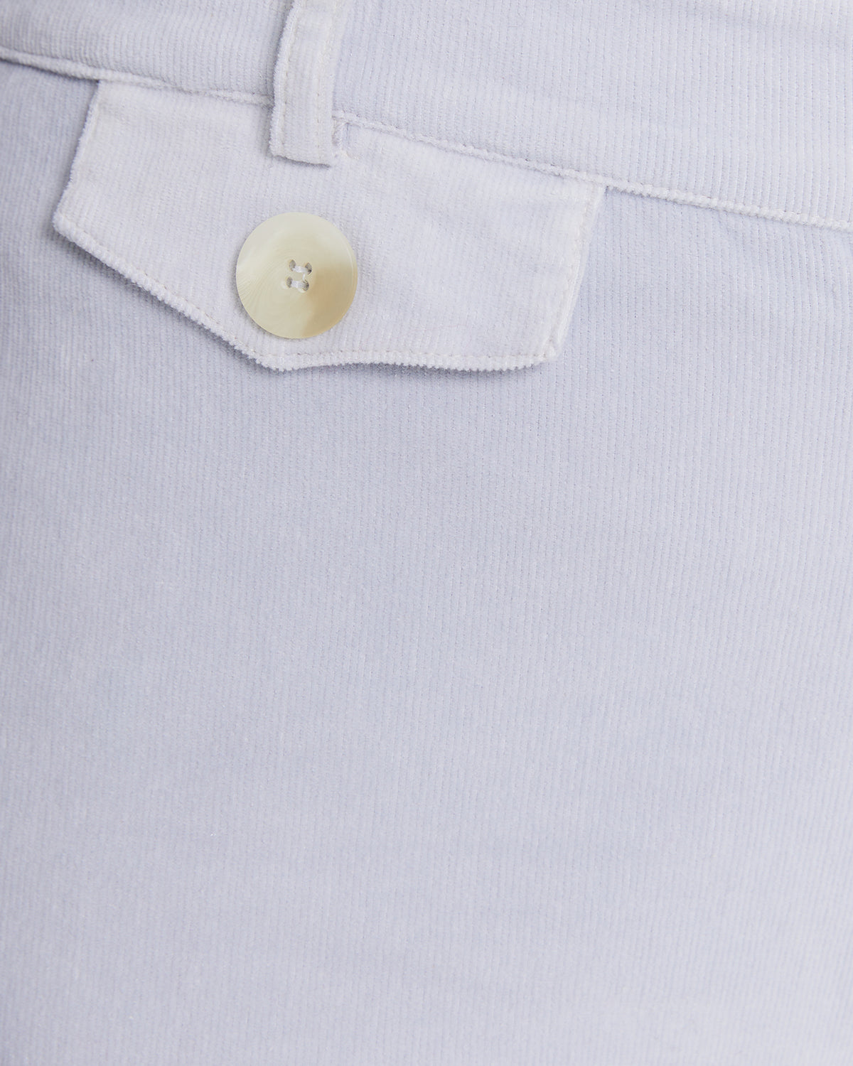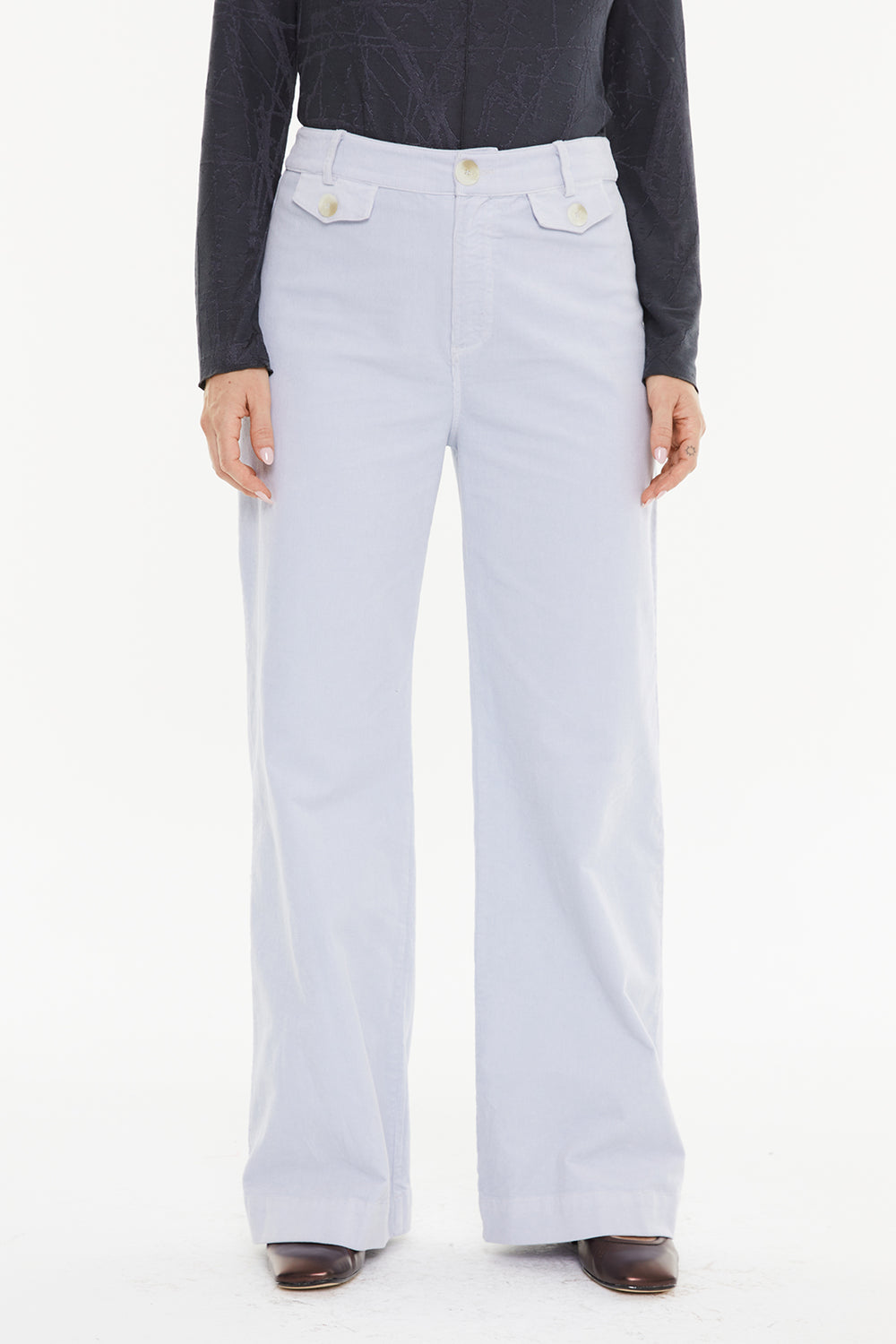 Pantalón de mujer con tejido de micropana, detalle de bolsillos con tapeta y botón en el delantero. Cierre con botón. Prenda sostenible.