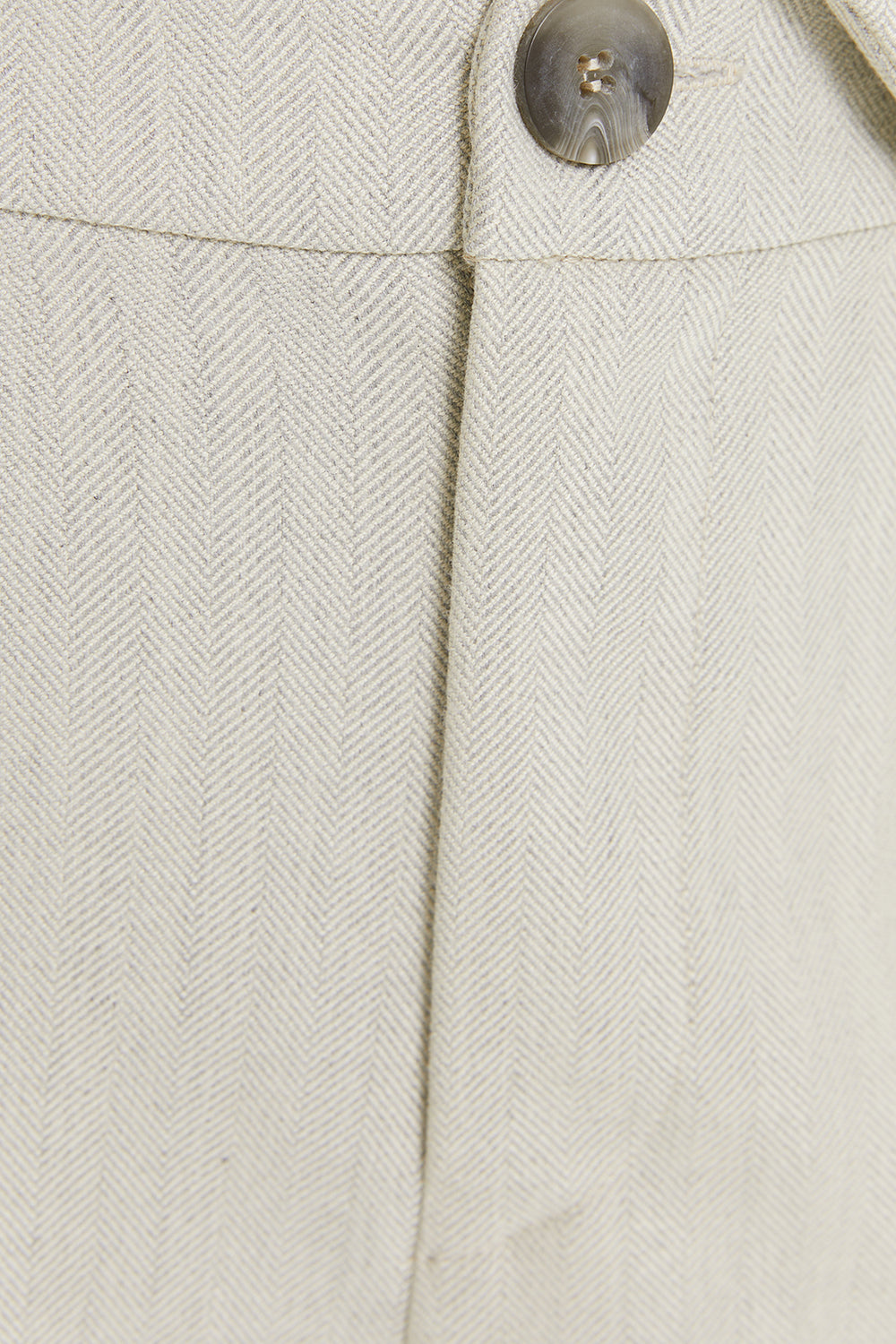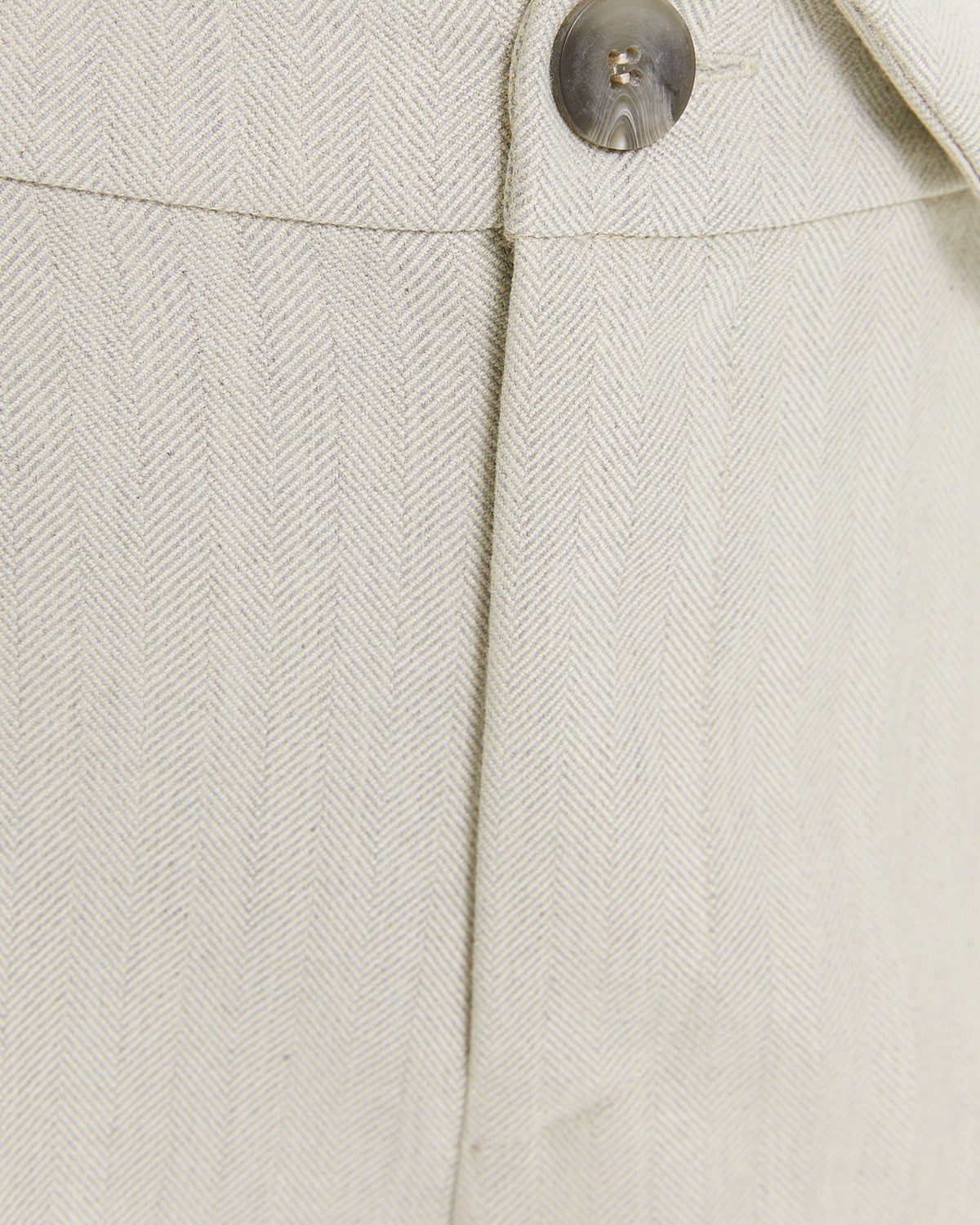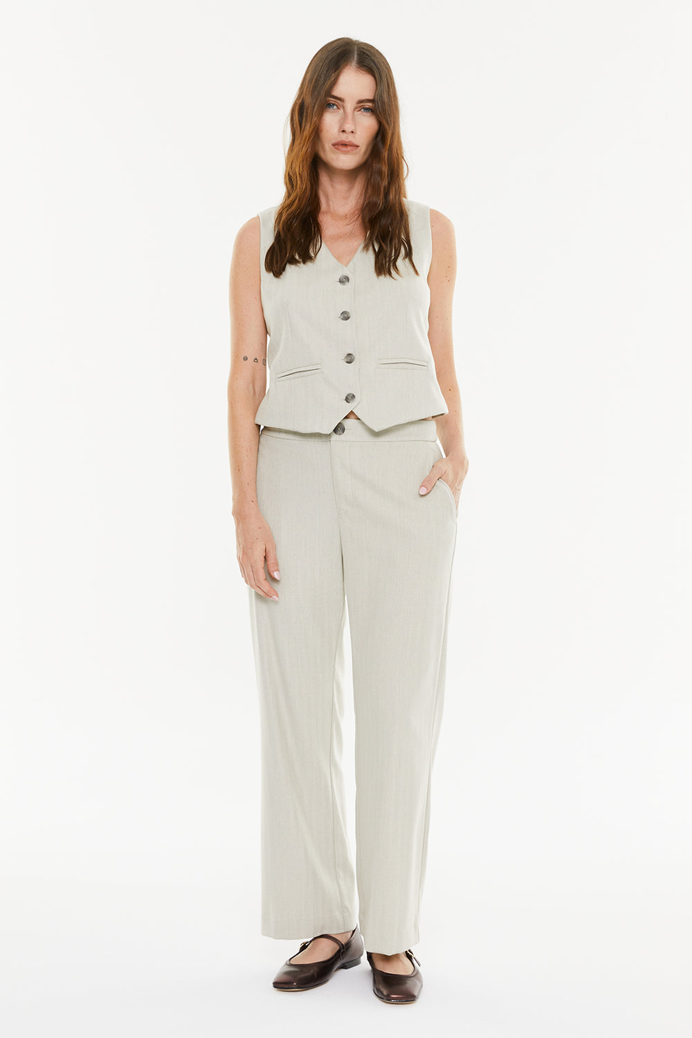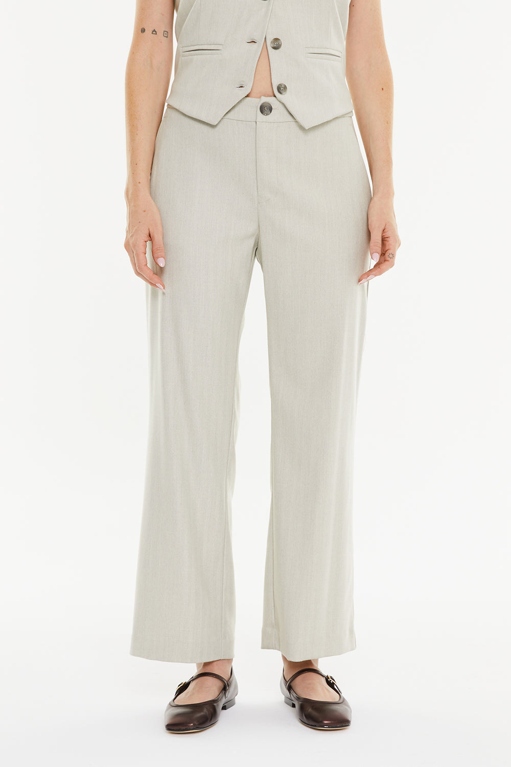 Pantalón tipo flare de mujer, con pinzas en el delantero, bolsillos laterales y cierre con botón.