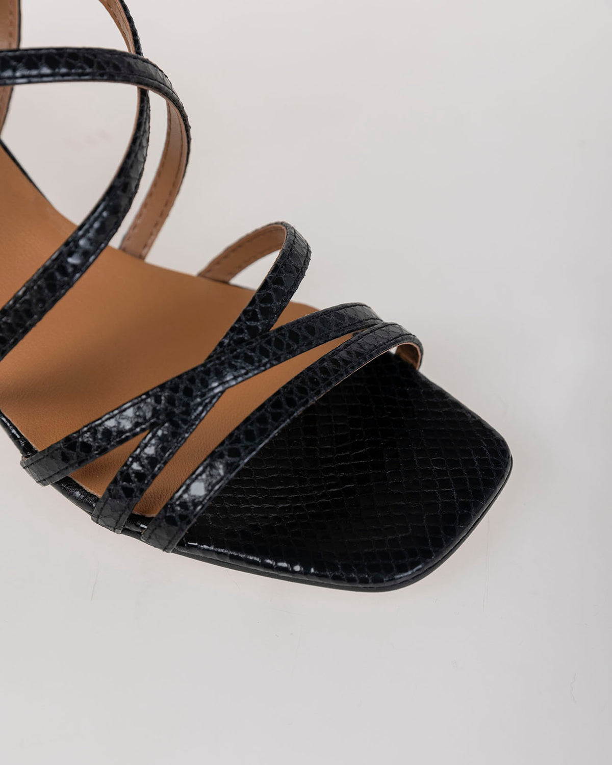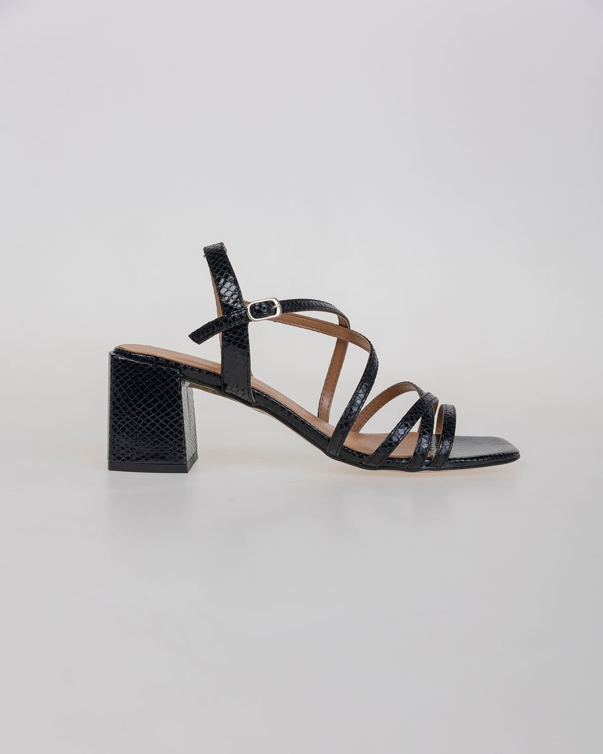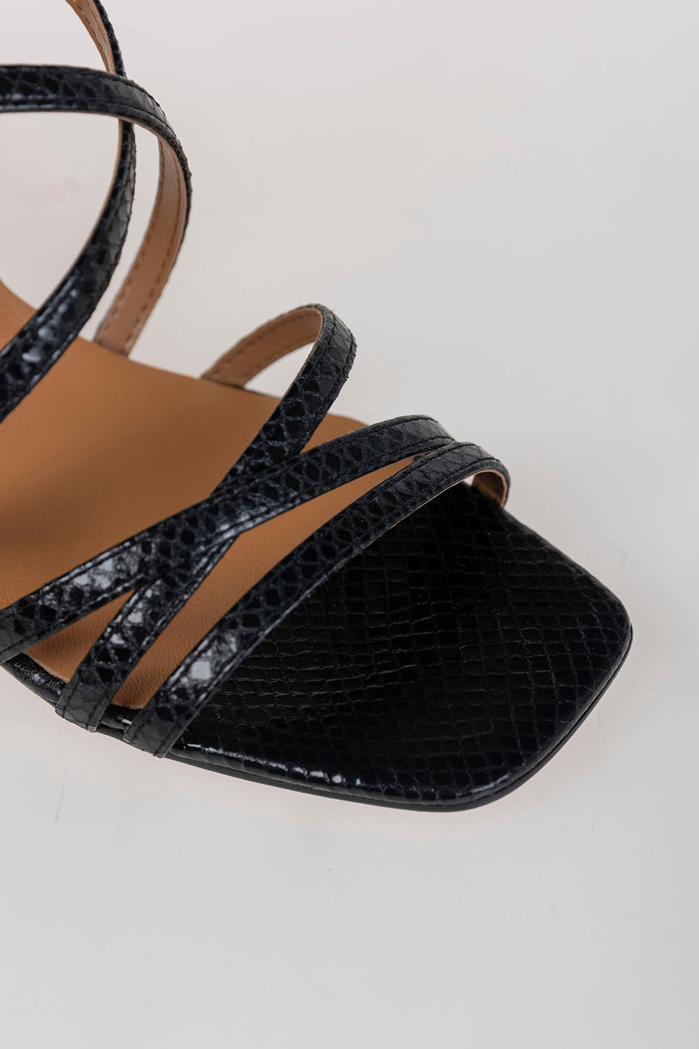 Sandalia negra con tiras de piel