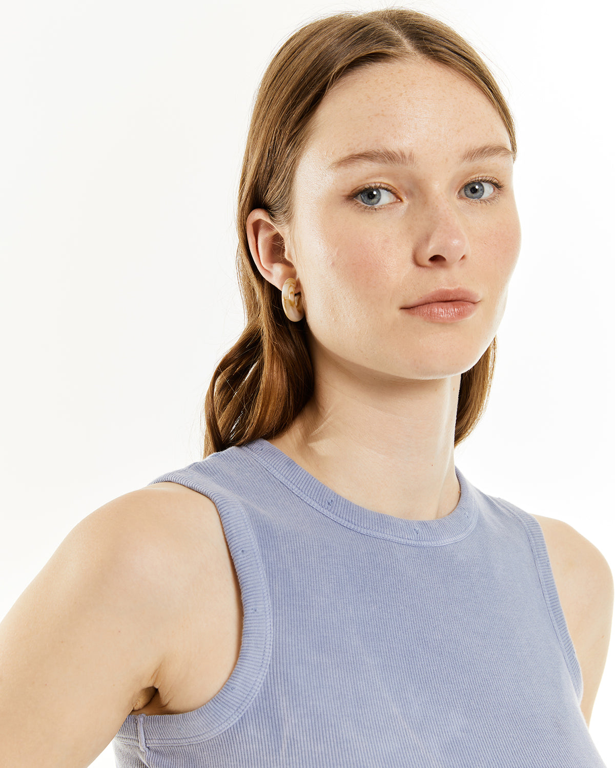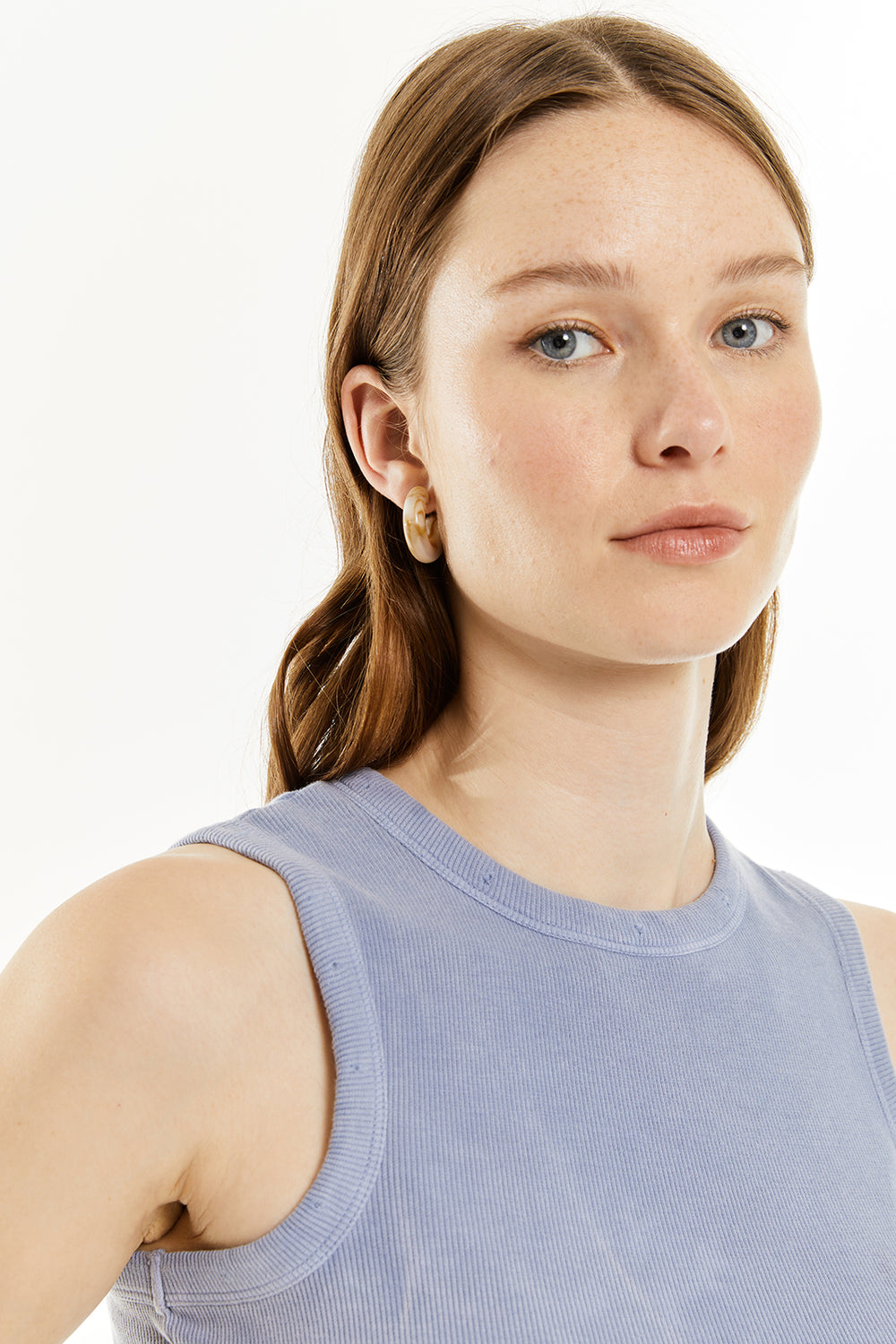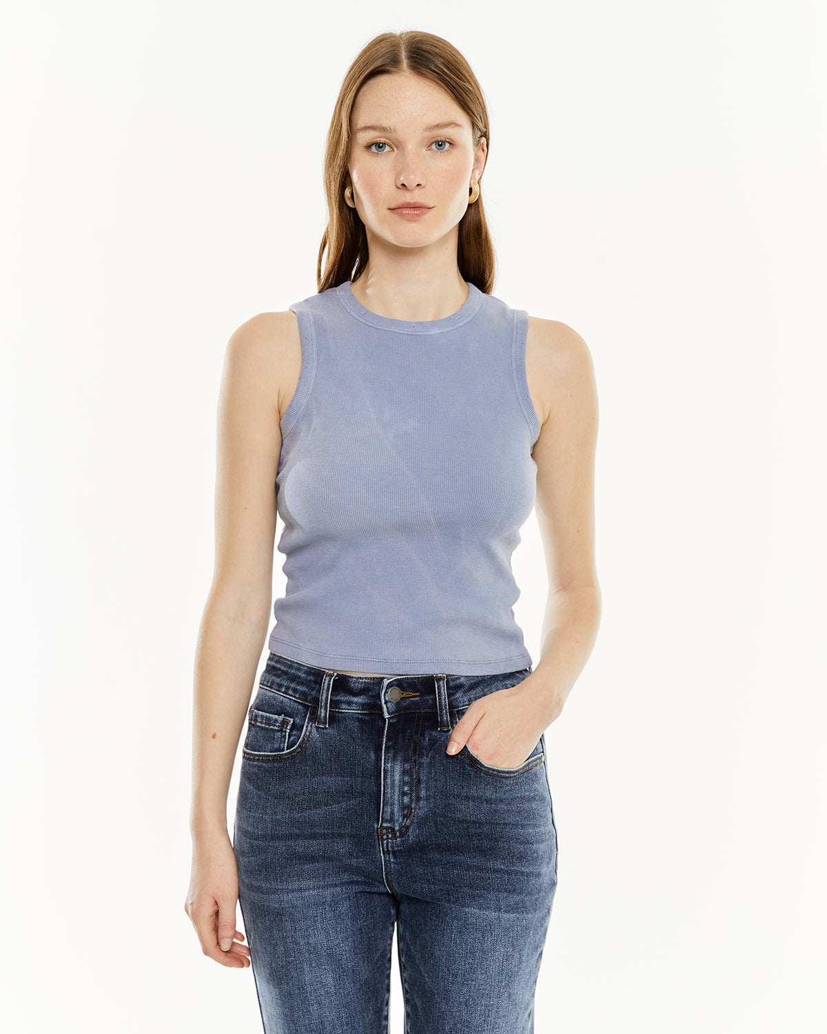 Camiseta de mujer sin mangas, con tintura efecto de lavado. Prenda sostenible.