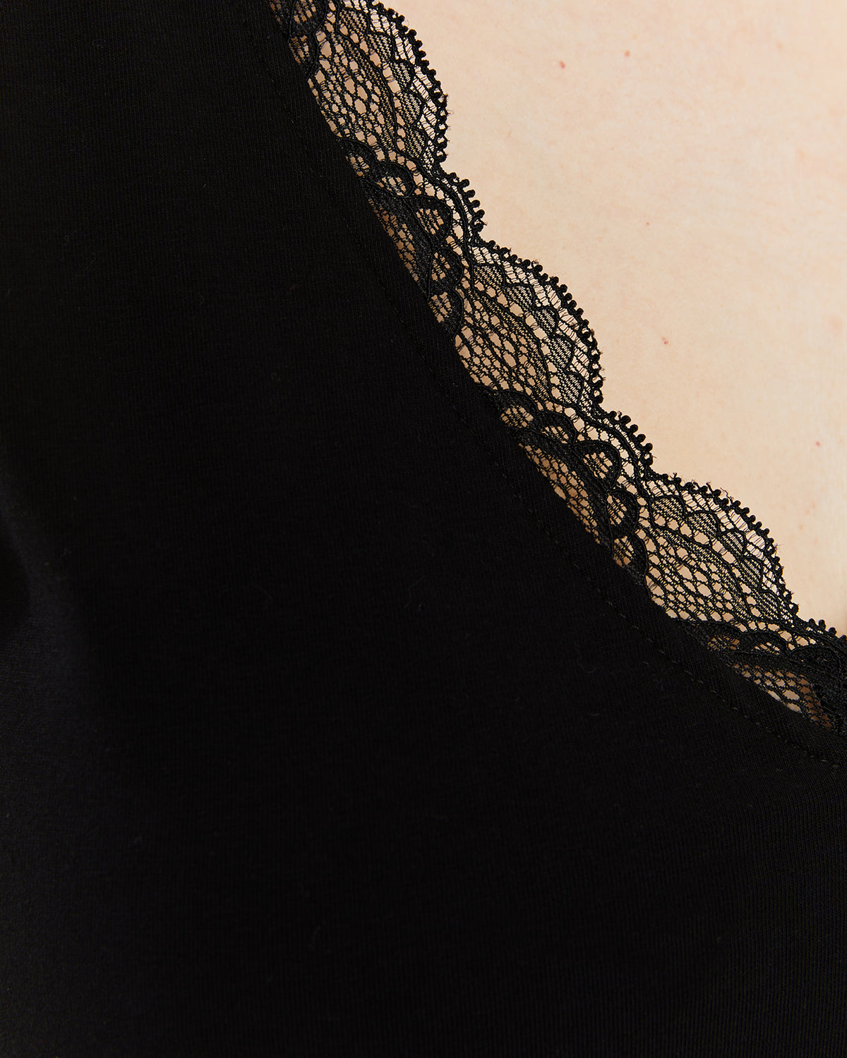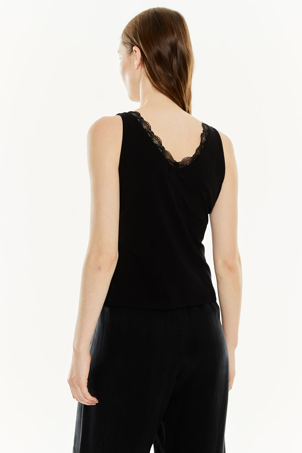 Top de mujer entallado con tirantes y detalle de puntilla. Prenda sostenible.