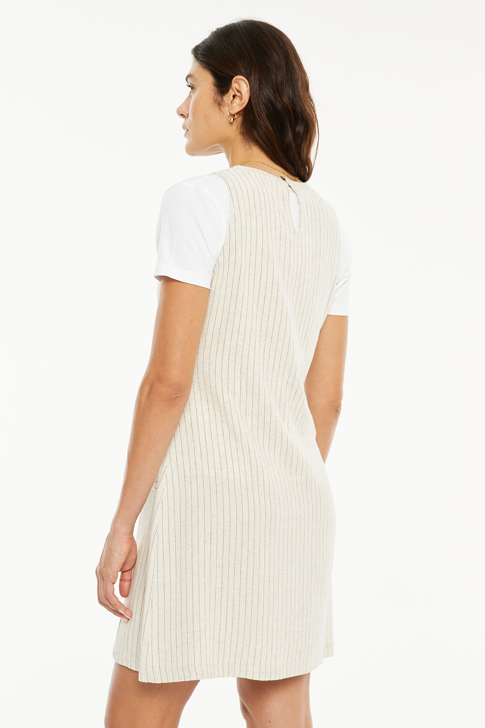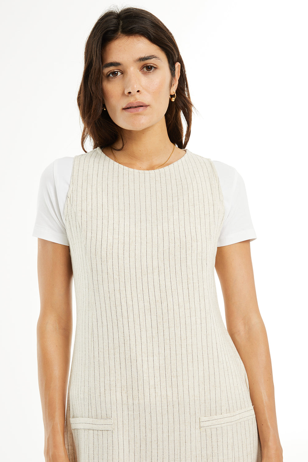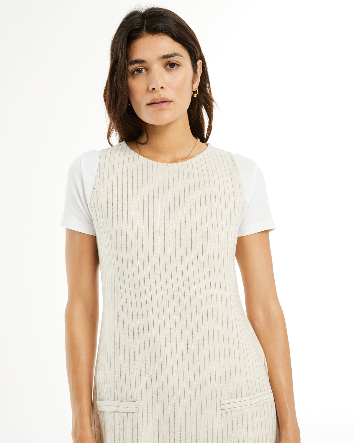Vestido entallado y corto de mujer con raya diplomática. Prenda sostenible.